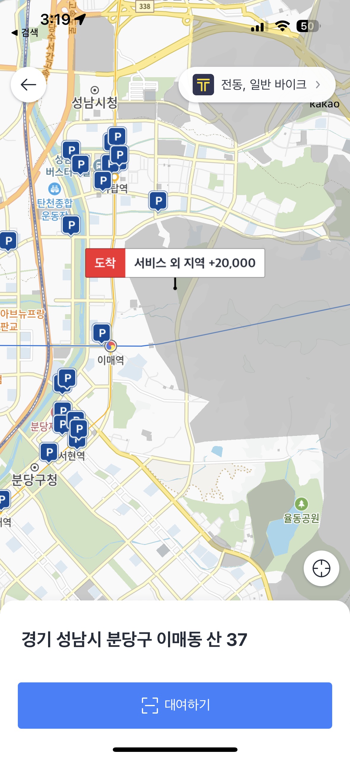 우선 내가 반남 하려고 하는 장소가 서비스 지역인지 아닌지부터 확인하는게 가장 중요한 부분일 것이라고 생각해요 ! 그래서 확인하는 방법은 아래 사진을 따라 하시면 되는데요 ! 먼저 오른쪽 하단에 "p" 버튼을 누르시고 "전동, 일반 바이크"를 클린하신 뒤 지도 화면의 크기를 줄이면 내가 반남할 장소가 서비스 지역인지 아닌지를 확인하실 수 있습니다 !