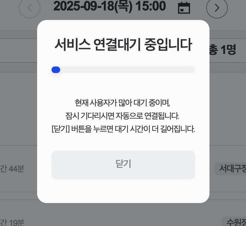 - 꿀팁 — 시간 분산: 1·2순위 매진 시 인접 시간대를 빠르게 재조회. 분·10분 단위로 좌석이 다시 풀리는 경우가 많습니다.