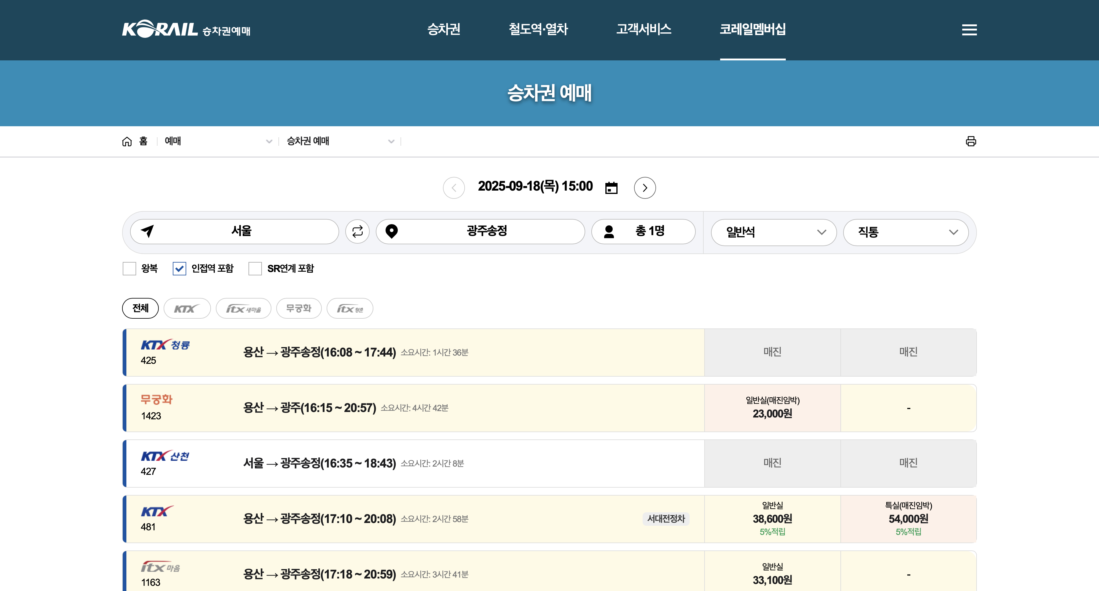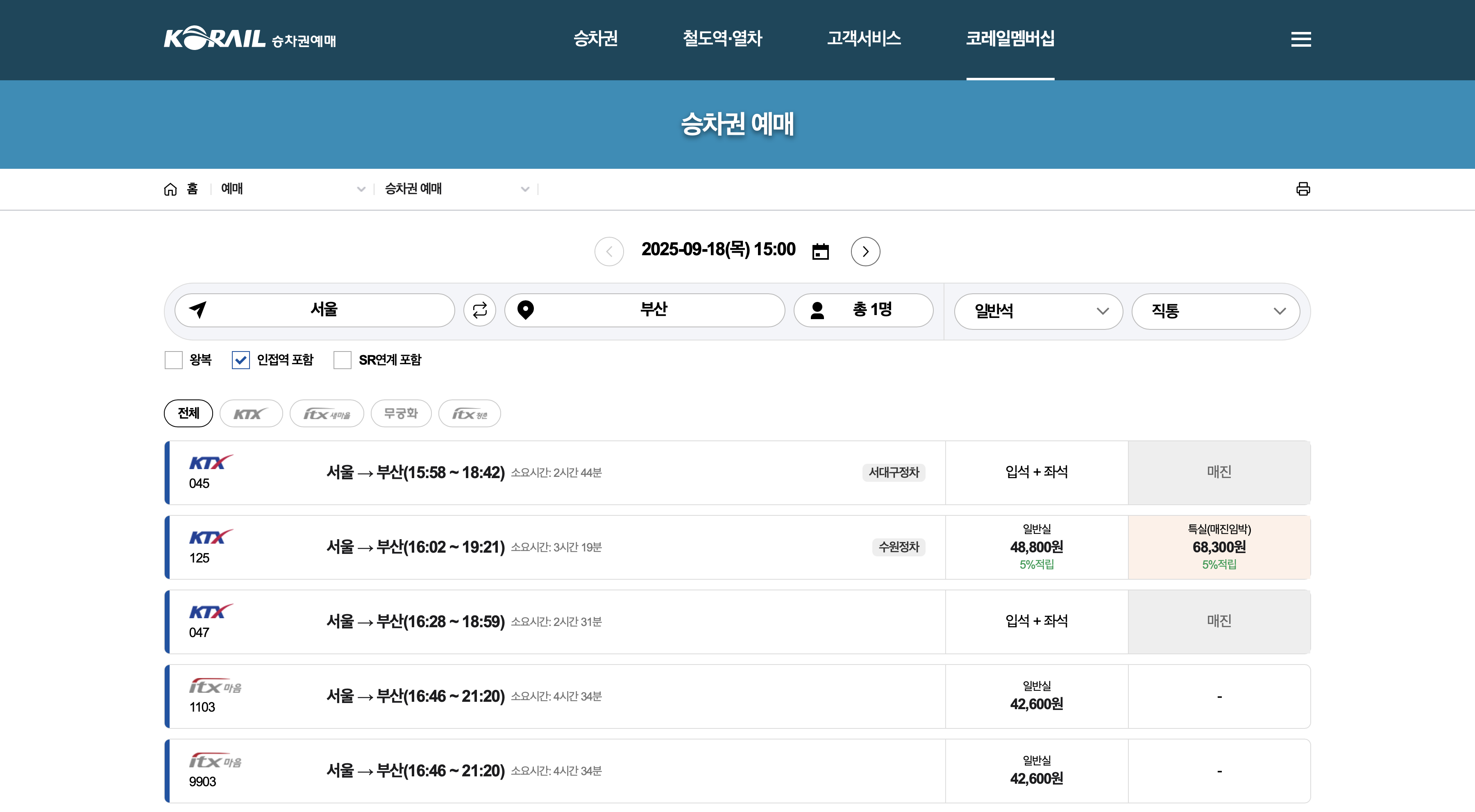- 꿀팁 — 유아/특수좌석: 유아 무임(좌석 미지정), 어린이 할인 등은 편성/열차별로 운영 방식이 달라질 수 있으니 예매 화면에서 옵션을 확인하세요.